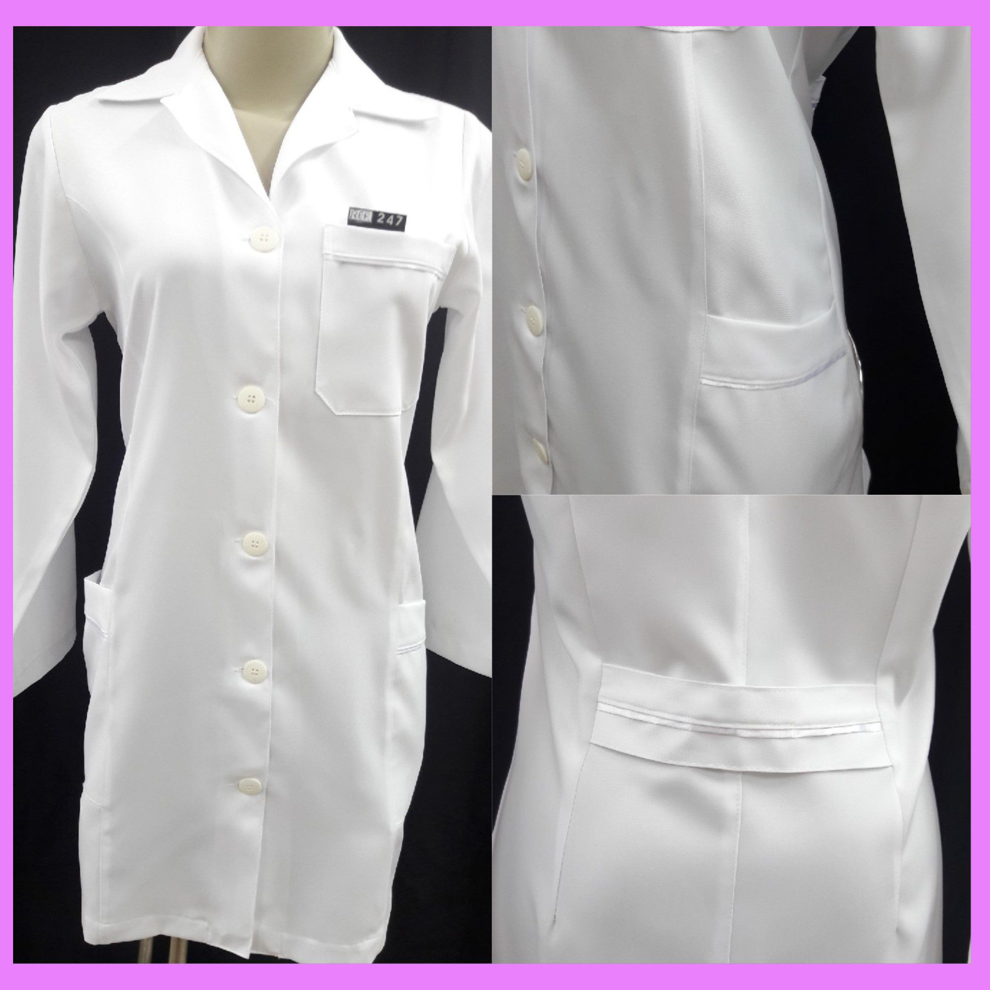 Jaleco Microfibra Feminino Acinturado Manga Longa com detalhe fitinha de cetim no bolso e cinto.Tecido 100% Polyester. Ótimo Caimento.